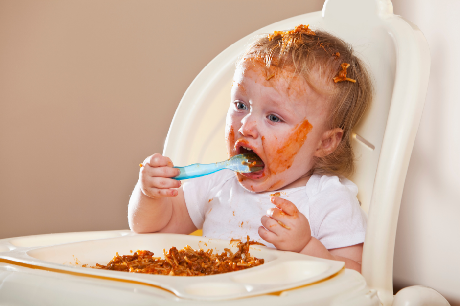 Pre-loading a spoon allows kids to practice self-feeding