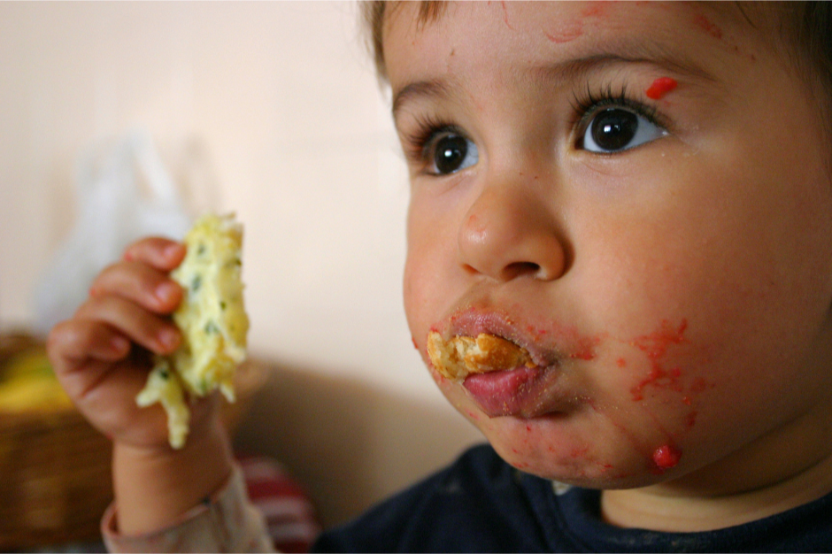 Learning to eat is a motor skill — mistakes are part of practice.